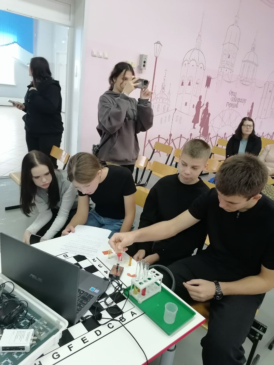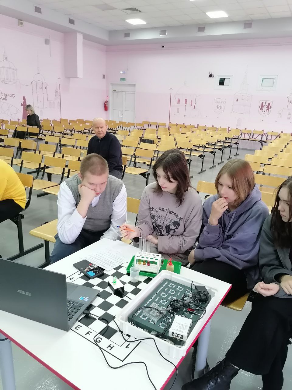 Гимназисты разбились по общегородским командам и сыграли в квиз с применением лабораторного оборудования. Определить качество продукта можно и с помощью физики, а датчик в этом деле поможет.