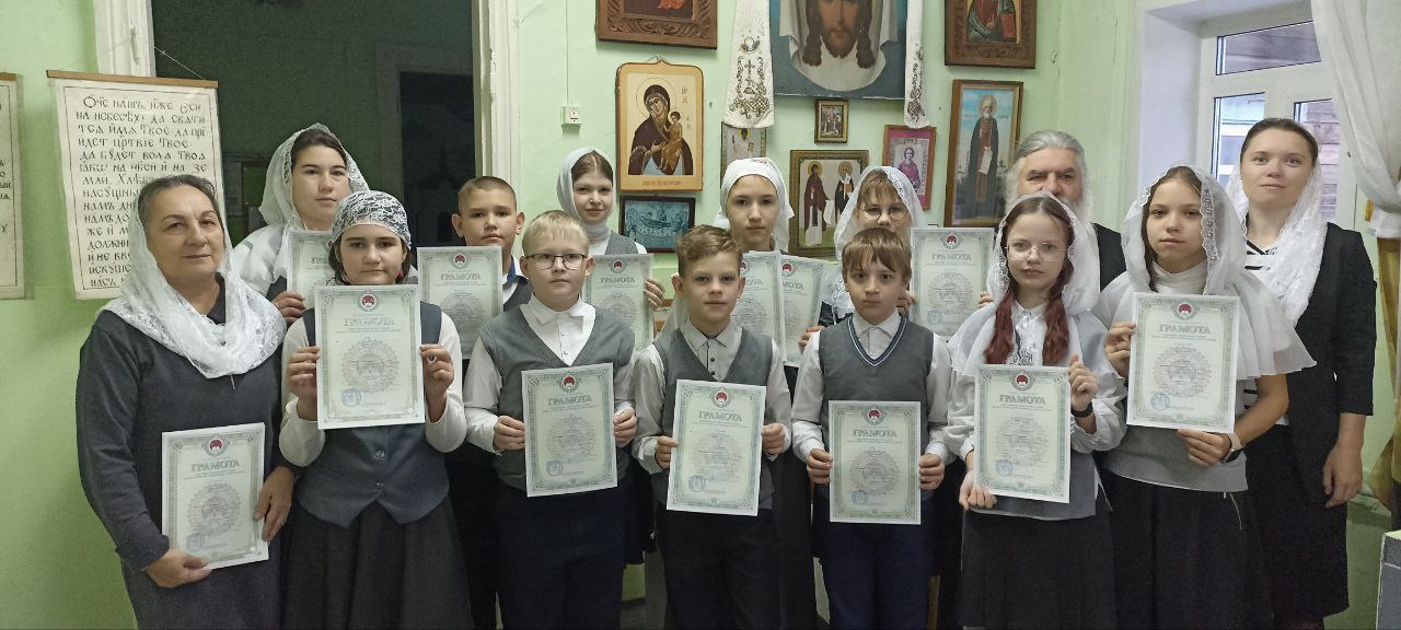 Поздравляем победителей и призёров самой масштабной олимпиады! 100 % обучающихся с 4 по 9 классы приняли участие в школьном этапе Всероссийской олимпиады школьников. Еще нет результатов по математике и частично по информатике (которая была разбита на 4 блока), зато все остальные олимпиады успешно завершены и баллы подсчитаны. Сегодня на ежедневном молебне ребята получили свои заслуженные грамоты и дипломы. О. Георгий, духовник гимназии, пожелал ребятам дальнейших успехов на радость родителям, Отечеству на пользу, во славу Божию.