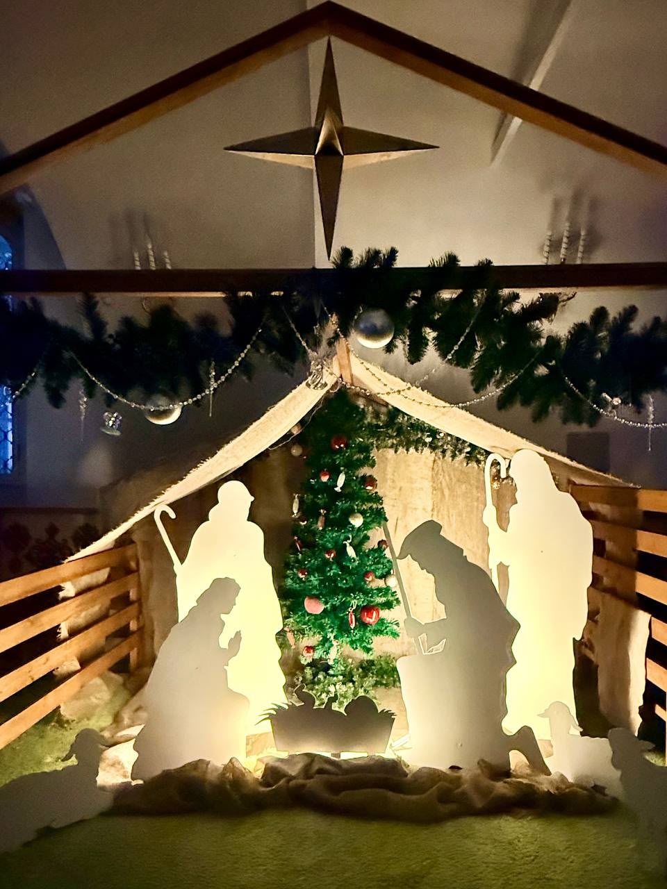 В преддверии светлого праздника Рождества Христова в гимназии царит особая атмосфера. В спортивном зале открыта Рождественская фотозона: стены занавешены праздничной тканью, а самое главное, установлена ёлка и место под вертеп.