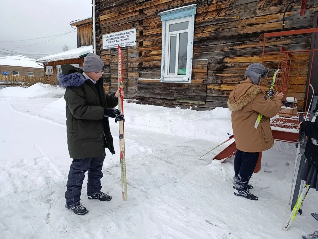 На самом деле позировать ребятам некогда: нужно приготовить лыжи, натереть специальной смазкой, проверить все крепления и зафиксировать ногу. Установилась отличная погода для лыжной подготовки. А если догнал и хочешь обогнать, скажи на выдохе "Хоп!" - и тебе уступят. Вот такие маленькие секретики помогают быть уверенным на лыжне, учат работать в команде, соблюдать спортивную этику, быть вежливым и при этом физически развитым. А сколько хорошего настроения дарят уроки на свежем воздухе!