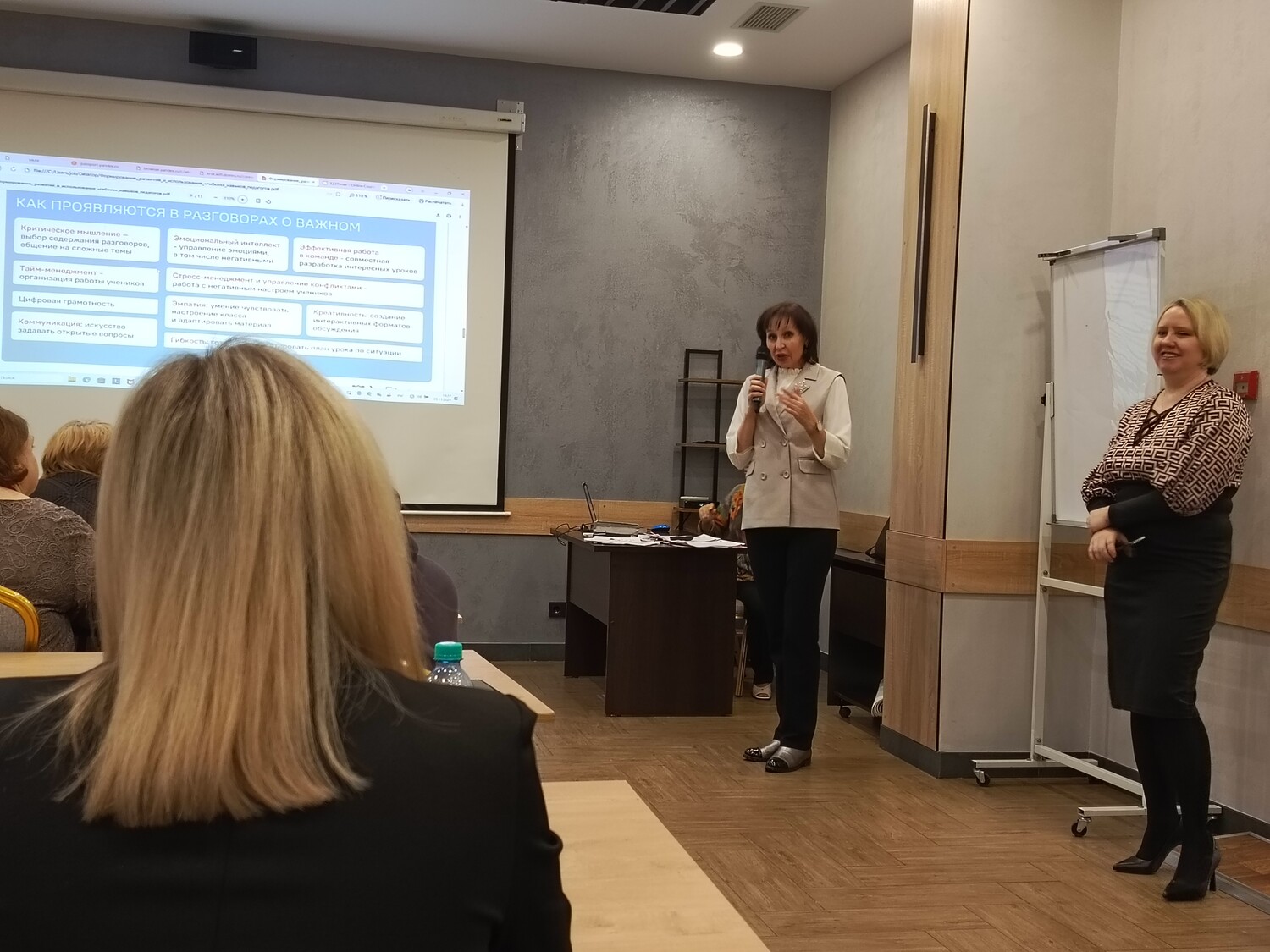 Среди них - заместитель директора по учебно-воспитательной работе Елфимова Татьяна Викторовна. Она уже закончила дистанционную часть обучения и 5 ноября в городе Красноярске стала активной участницей очной части. Татьяна Викторовна с коллегами из разных уголков нашего обширного края решала кейсы по управлению воспитательной работы в обр