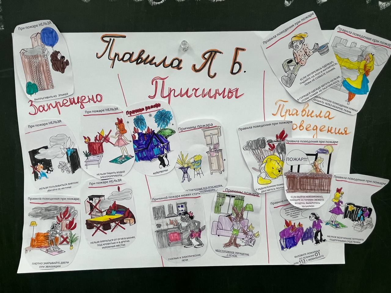 В рамках краевой операции "Новый год" в гимназии проводятся классные часы по пожарной безопасности и тренировочные учебные эвакуации. Так, во 2-3 классах прошло тематическое занятие, на котором ребята создали плакат о правилах поведения при пожаре, проанализировали с классным руководителем Дианой Николаевной Нестеровой причины возникновения возгорания и установили, ЧТО запрещено делать при пожаре: например, прятаться под кровать категорически запрещено.