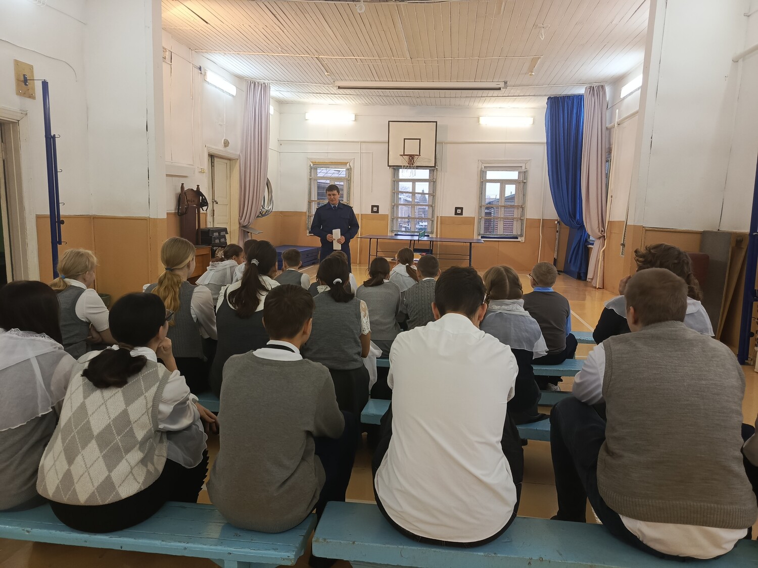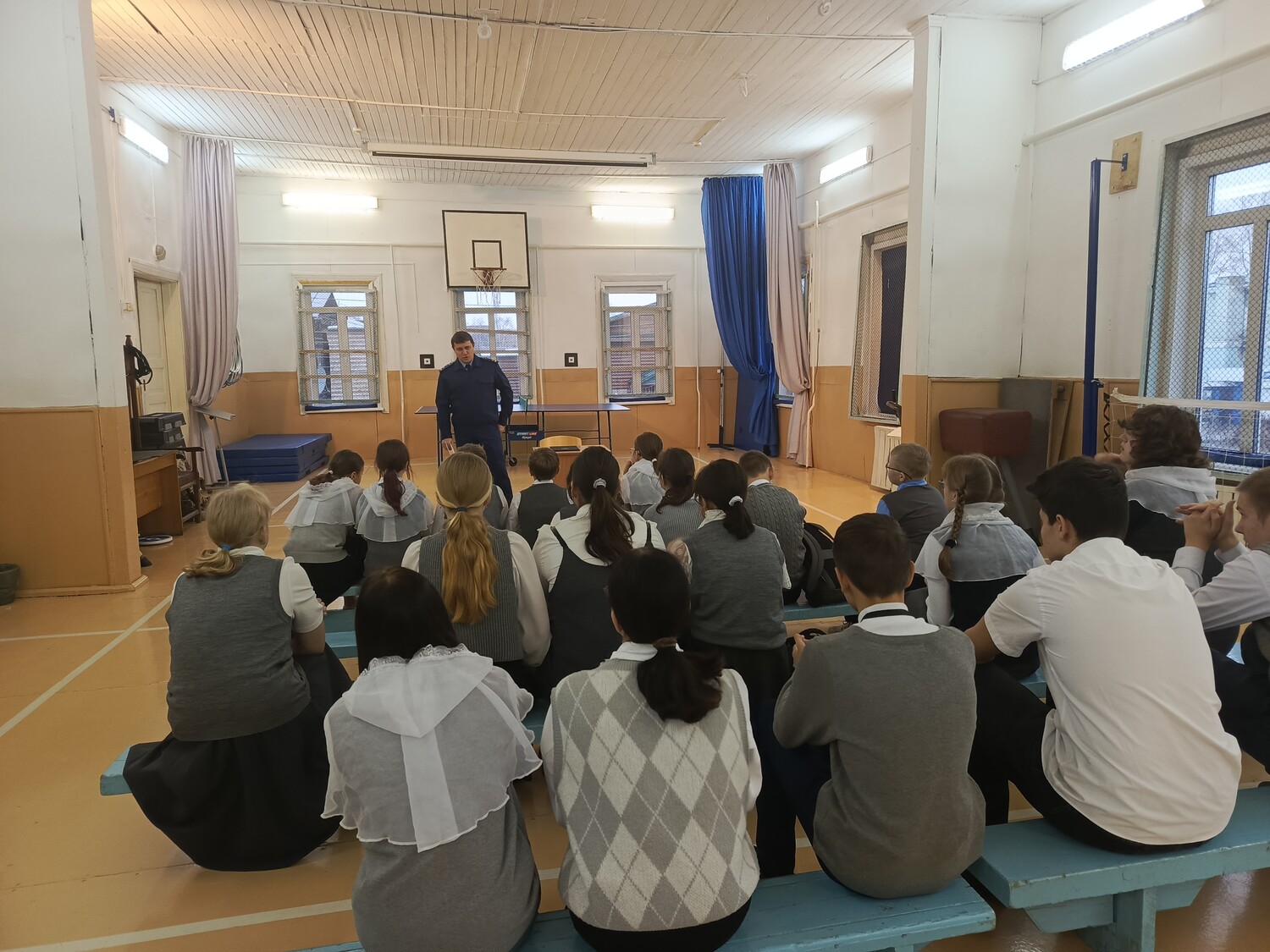 Денис Владимирович несмотря на напряженный рабочий график уделил время гимназистам и провел профилактико-просветительскую встречу, на которой рассказал о содержании работы прокуратуры, её функциях и обязанностях. Разъяснил ответственность за правонарушения в сети Интернет, угрозах террористического характера, а также поделился реальными делами, по которым проходили судебные процессы. Ребята были активны и задавали вопросы, учителя от них не отставали: как стать прокурором? Возникало ли желание уволиться? Какие экзамены на ЕГЭ необходимо сдавать? Есть ли целевое обучение? Какими чертами необходимо облада