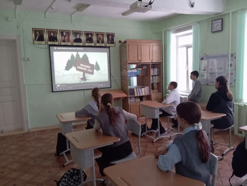 Зима в самом разгаре, и самое время вспомнить о правилах, которые могут спасти жизнь. На прошлой неделе с 1 по 9 класс в гимназии прошли тематические классные часы, посвящённые безопасному поведению на водоёмах в зимний период.
